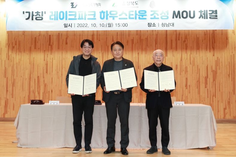 [한국기자연대] 충청북도는 10일 청남대 대통령기념관 세미나실에서 (사)한국건축가협회, 자문밖문화포럼과 함께 (가칭)‘레이크파크 하우스타운 조성 업무협약식’을 개최했다.