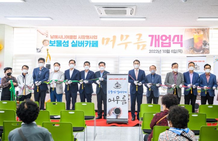 [한국기자연대] 남해시니어클럽은 지난 6일 보물섬 실버카페 ‘머무름’ 개업식을 열고 활력 있는 노인일자리 창출에 나섰다.