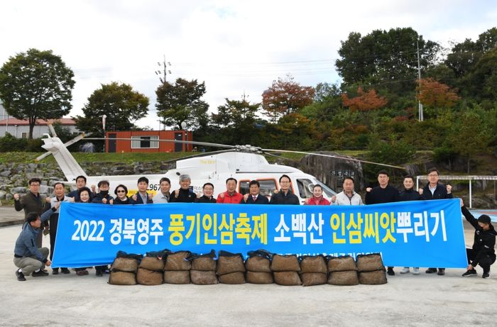 소백산 인삼씨앗 뿌리기 퍼포먼스는 영주 문정동 헬기 이,착륙장에서 출발해 영주 소백산 인근 옥녀봉과 국망봉 일대, 삼가동 소백산 줄기 일대로 이동하며 인삼 씨앗 약 660kg를 헬기로 공중에서 살포했다.