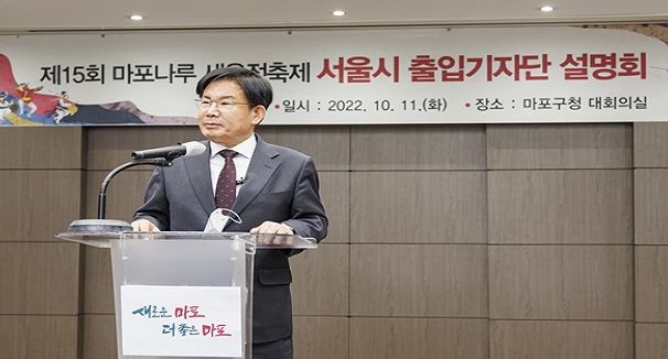 [한국기자연대] 박강수 마포구청장은 11일 오전 마포구청에서 서울시 출입 기자를 대상으로 3년 만에 대규모로 재개하는 ‘제15회 마포나루 새우젓축제’ 기자설명회를 가졌다.