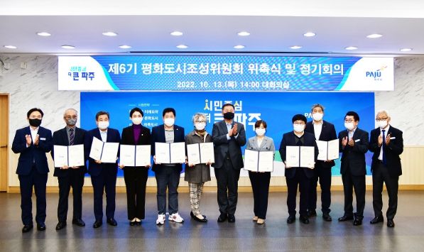 [한국기자연대] 파주시는 13일 시청 대회의실에서 2022년 파주시 평화도시조성위원회 위촉식 및 정기회의를 개최했다.
