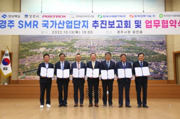 경주시에 따르면 13일 경주시청 알천홀에서 7개 기관 대표들이 ‘경주 SMR 국가산업단지 추진보고회 및 업무협약식’ 체결했다.