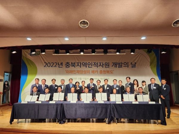 [한국기자연대] 충북도가 13일 충북대학교 개신문화관에서 2022년 충북지역인적자원개발의 날 행사에 맞춰 충청북도교육청, 대학, 기업, 청주상공회의소 등 32개 유관기관(기업)과‘미래 신산업 인력양성 및 지역인재채용 확대 협력’을 위한 업무협약을 체결했다.