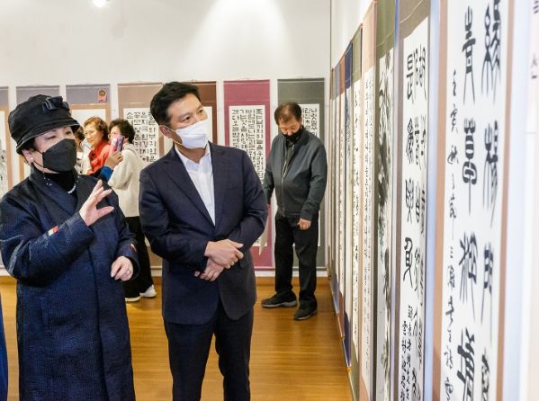 [한국기자연대] 김태우 서울 강서구청장이 17일 강서문화원에서 열린 ‘제23회 대한민국 아리반서예문인화대전’ 시상식에 참석, 입상자들에게 축하의 말씀을 전했다.