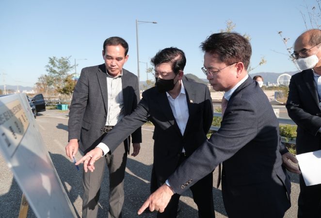 이날 최상대 기재부 제2차관은 지역현안 간담회를 가진 후 직접 서면대교 예정지를 방문했다.