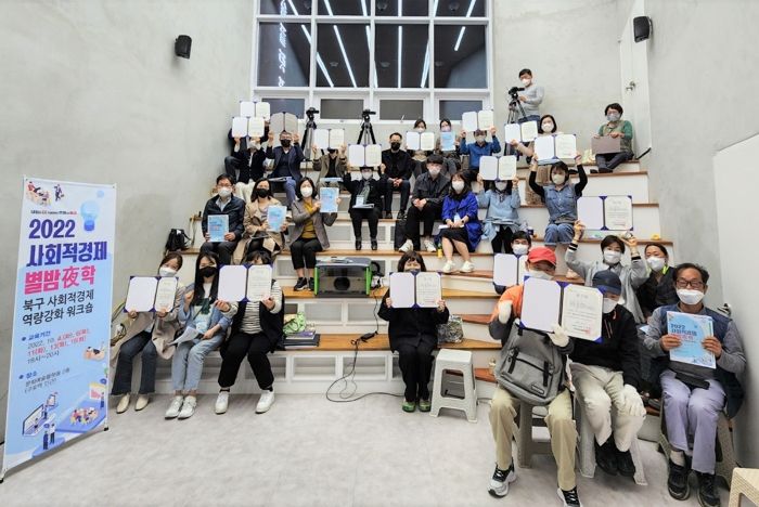 ‘사회적경제 별밤夜(야)학’은 지난 10월 4일부터 18일까지 매주 화요일과 목요일 북구 문화예술플랫폼에서 북구 사회적경제기업 대표 및 실무자, 그리고 창업에 관심 있는 주민 등 총 30여명을 대상으로 운영됐다.