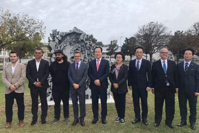 이번 리스본 방문의 주요 일정인 양국에 대한 관심과 우호 제고를 위한‘주앙멘데스 기념조형물 제막식’또한 포르투갈 현지 언론의 관심 속에 지난 18일(현지시간) 개최됐다. 세계적인 포르투갈의 예술가 Vhils(빌스)의 재능기부로 제작된 남녀 한 쌍의 주앙멘데스 기념조형물 중 한국 영토를 표현하는 동시에 한국인을 형상화한 여성상 조형물이 리스본의 테주 강과 4월 25일 다리의 풍광이 펼쳐지는 공원(Jardim Docas da Ponte)에 설치됐고, 리스본 시와 빌스 작가가 참석한 가운데 첫 선을 보였다. 해당 조형물은 포르투갈 현지 주요 일간지에 전면 보도 되는 등 관심이 뜨거웠고 포르투갈 내 Vhils(빌스) 작가의 명성을 확인할 수 있었다.