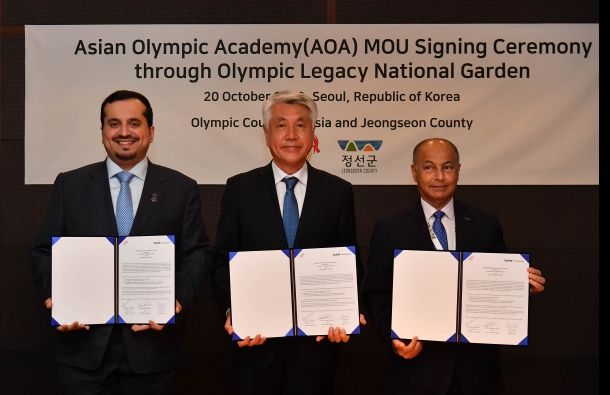 [한국기자연대] 정선군은 10월 20일 아시아올림픽평의회(OCA)와 OCA의 아시아올림픽아카데미(AOA) 설립을 올림픽국가정원을 통해 추진하고자 양 기관이 공동의 협력체계를 구축하기로 하고 협약(MOU)을 체결했다.