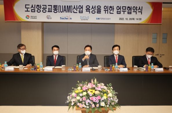 [한국기자연대] 경남도는 20일 오후 한국항공우주산업(주)에서 진주시, 사천시, 경상국립대학교, KAI와 함께 도심항공교통(UAM, Urban Air Mobility) 산업 육성을 위한 업무협약을 체결했다.