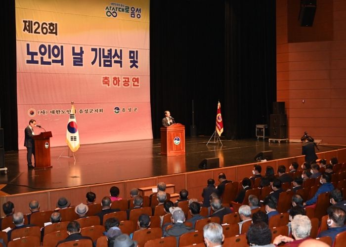 [한국기자연대] 음성군은 21일 음성문화예술회관 대강당에서 제26회 노인의 날 기념식을 열고 노인복지 유공자에 대한 표창 수여식을 가졌다.