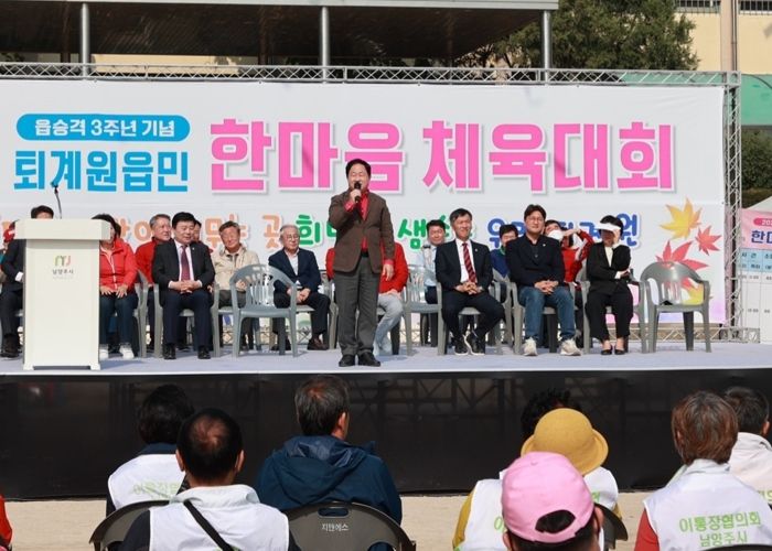 22일 행사에 참석한 주광덕 남양주시장은 “오늘같이 햇살이 따사로운 가을날 체육 대회를 개최하게 된 것을 진심으로 축하드린다.”라며 “읍 승격을 기념하는 체육 대회에 함께하게 돼 기쁘고, 오늘 행사에 참석하신 퇴계원읍의 모든 주민 여러분이 서로 격려하고 칭찬하는 뜻깊은 가을 축제가 되길 바란다.”라고 말했다.