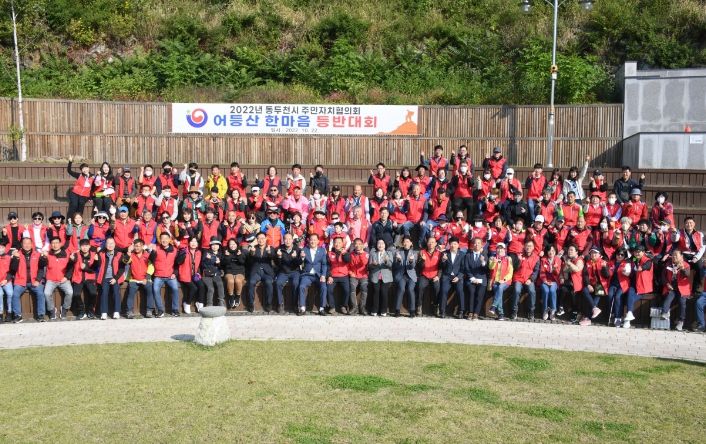[한국기자연대] 동두천시 주민자치협의회는 지난 22일 어등산 힐링 체험숲에서 2022년 주민자치 한마음 등반대회를 개최했다. 이날 행사에는 박형덕 동두천시장을 비롯하여 김성원 국회의원, 김승호 시의회의장 및 시의원, 사회단체장 등 약 150여명이 참석했다.