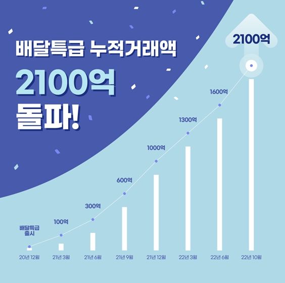 배달특급은 지난 9월 25일, 서비스 만 2년이 되기 전에 누적 거래액 2,000억 원 기록을 달성하며 꾸준히 성장세를 입증해오고 있다.