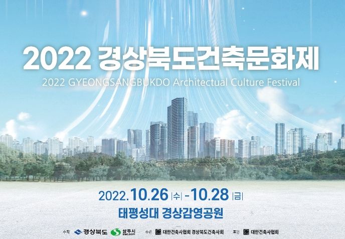 [한국기자연대] ‘2022 경상북도 건축문화제’가 10월 26일 ~ 28일까지 3일간 상주시 태평성대 경상감영공원에서 개최된다. 경상북도와 상주시가 주최하고 경상북도건축사회가 주관하는 이번 행사는 ‘전통과 미래의 만남 '부제 : 미래 천년을 위한 건축'’을 주제로 하여 경북 건축인과 지역민이 함께하는 축제의 장으로 운영된다.