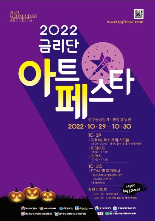 25일 시에 따르면 경주 중심상권 르네상스 사업의 일환으로 ‘2022 금리단 아트페스타’ 행사가 오늘 29일부터 30일까지 봉황대 특설무대와 중심상가 일원에서 개최된다.