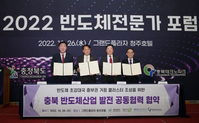 26일 시에 따르면, 그랜드플라자 청주호텔에서 열린 ‘2022 반도체 전문가포럼’에서 4개 기관은 반도체산업 육성을 위한 공동협력 협약체결 및 육성 전략을 발표했다.