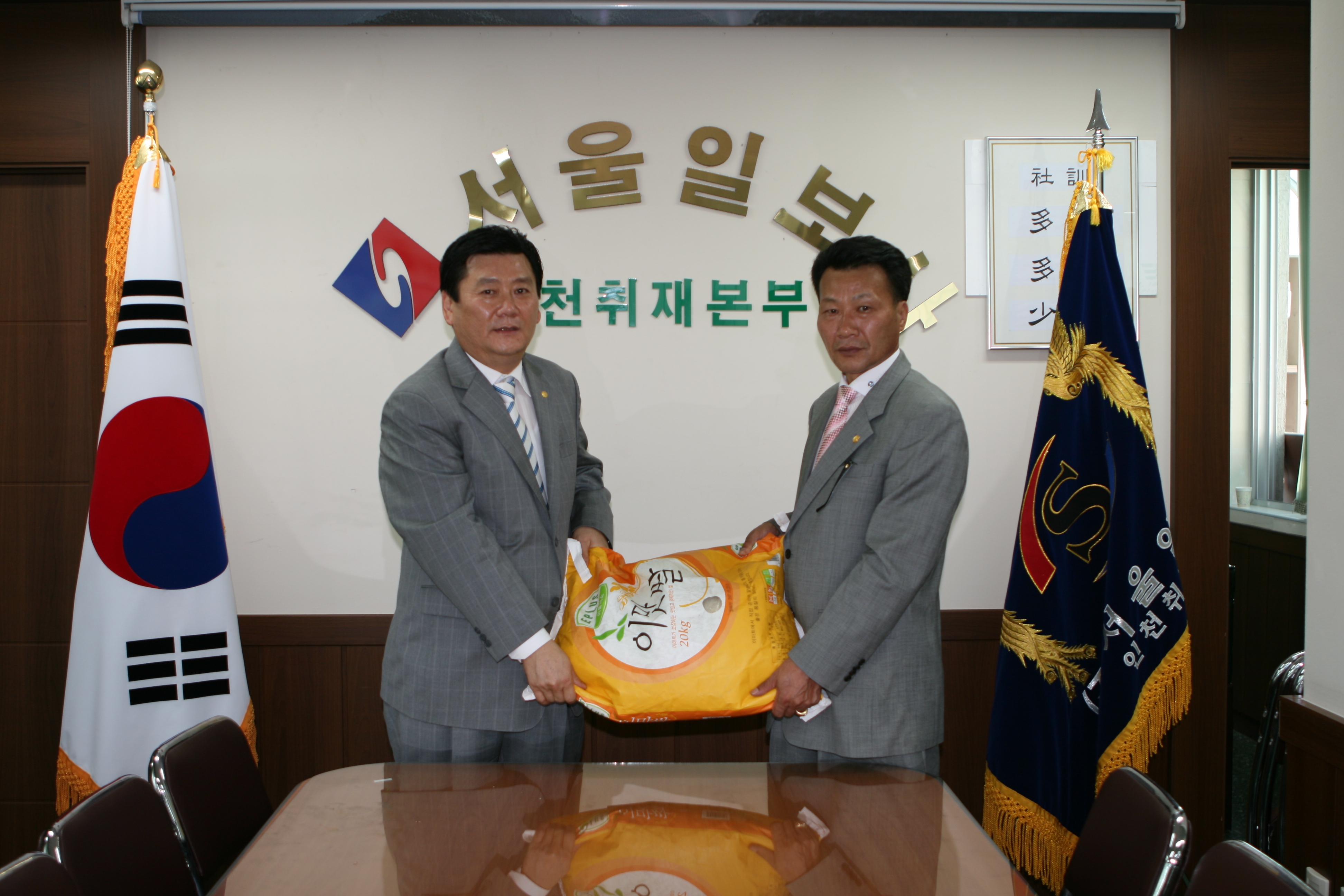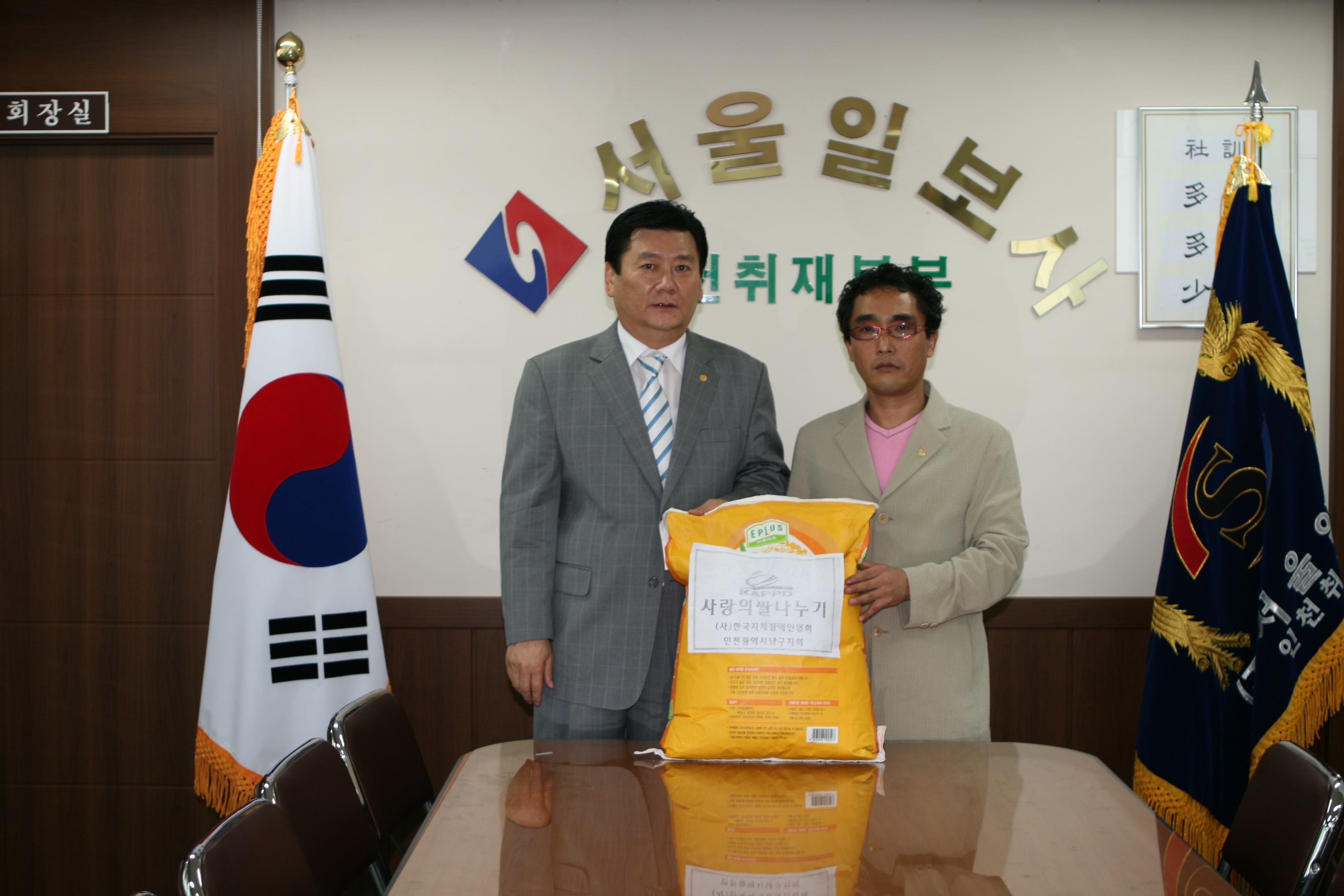 이날 신화균 지부장, 최명덕 남구지회장, 회원 등은 서울일보 인천취재본부 이원형 본부장과 쌀 기증식을 갖고 인사말을 통해 "소년소녀 가장 등 어려운 이웃들을 위해 애쓰시는 이원형 본부장과 직원들에게 감사를 드린다"면서 "저희 회원들도 어려운 생활을 하고 있지만 열악한 환경속에 살아가고 있는 소년소녀 가장들을 생각할 때 한 부모이기 전에 그들의 부모라는 생각으로 우리 모든 회원들이 작은 정성을 모았다"고 말했다