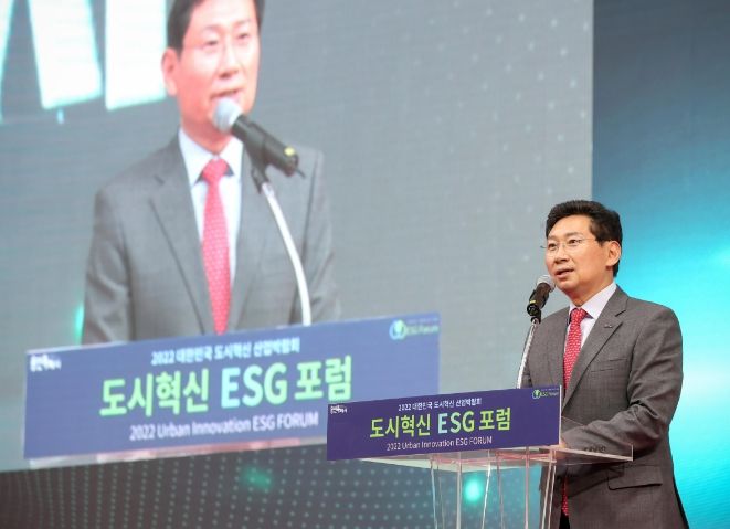 [한국기자연대] 용인특례시는 지난 27일 2022 대한민국 도시혁신 산업박람회가 열리고 있는 처인구 마평동 용인종합운동장 행사장 메인 무대에서 ‘도시혁신 ESG 포럼’을 개최했다.