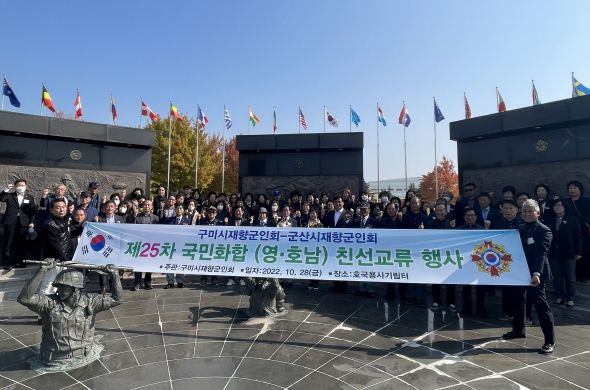 [한국기자연대] 구미시재향군인회는 10월 28일 11시 동락공원 호국용사 기림터에서 군산시재향군인회를 초청하여 제25차 국민화합(영ㆍ호남) 친선교류 행사를 개최했다.