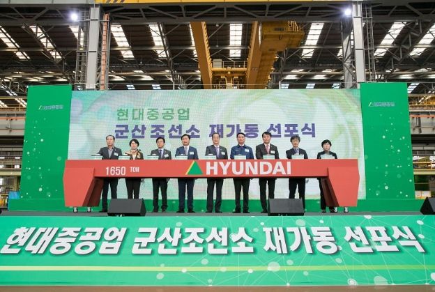 [한국기자연대] 군산시는 28일 현대중공업 군산조선소가 재가동 선포식을 열고 본격 재가동에 들어갔다고 밝혔다.