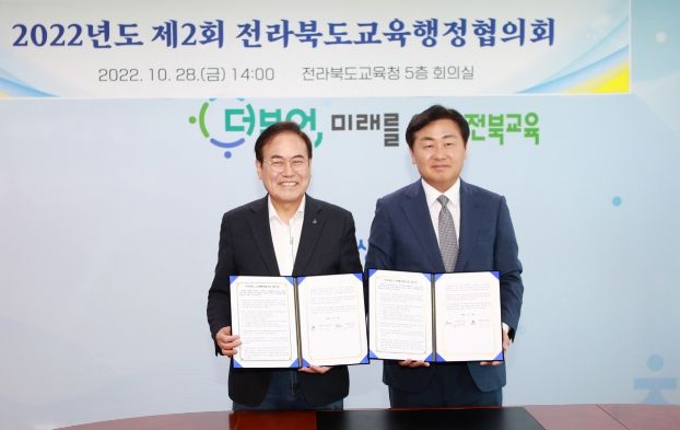 서거석 전라북도교육감과 김관영 도지사는 28일 도교육청에서 양 기관 간부들이 참석한 가운데 2022년도 2차 전라북도교육행정협의회를 열고 이같이 결정했다.