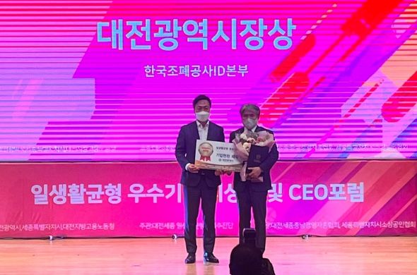 올해 일생활 균형 우수기업으로는 ▲'대전시장상' 한국조폐공사ID본부 ▲'세종특별자치시장상' (재)세종인재평생교육진흥원 ▲'대전지방고용노동청장상' 스탠더드시험연구소(주) ▲'대전세종충남경영자총협회장상' 도로교통공단대전세종충남지부, ㈜파인비엠 ▲'장려상' 이루다플래닛주식회사, (주)워터아이즈 등 7개 기업이 수상의 영예를 안았다.