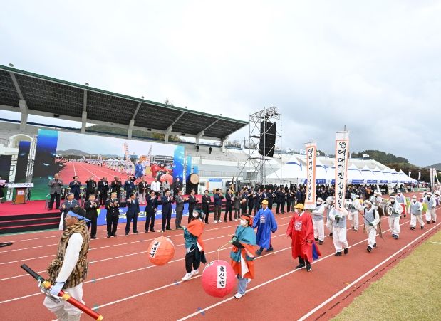 한편 이날 입장식에서는 읍·면에서 각 고장을 상징하는 대표적 이미지와 특산물을 형상화한 소품을 활용·연출하는 등 관중의 웃음을 자아내어 대회 분위기를 한껏 고조시켰으며, 입장상은 그중 가장 큰 호응과 박수를 받은 달산면과 남정면에게 돌아갔다.