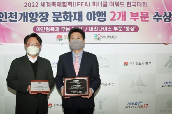 [한국기자연대] 인천개항장 문화지구의 역사문화자원을 활용한 야간형 문화관광행사 ‘2022 인천개항장 문화재 야행’이 사단법인 세계축제협회(IFEA World)가 주관하는 ‘2022 피너클 어워드(Pinnacle Awards) 한국대회’에서 2개 부문(야간형 축제 ‘은상’, 머천다이즈 ‘동상’)을 석권했다.