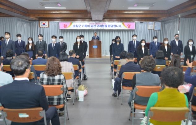 [한국기자연대] 순창군은 10월 31일 순창군청 3층 회의실에서 새내기 공무원 16명과 가족들 25명이 참석한 가운데 공직사회의 첫발을 내딛는 임용식을 가졌다.