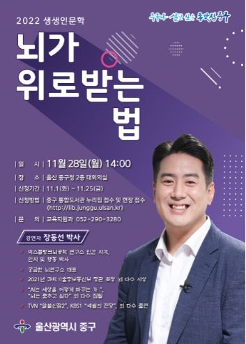 [한국기자연대] 울산 중구가 오는 11월 28일 오후 2시 중구청 대회의실에서 ‘2022년 생생인문학’강연을 개최한다.