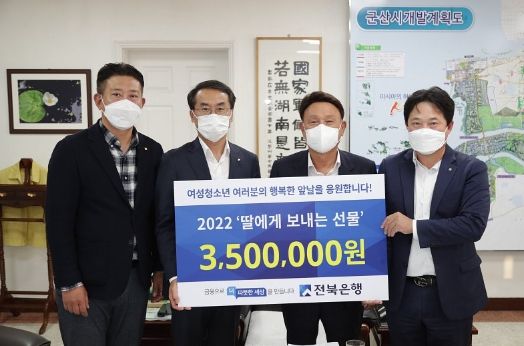 이날 기탁식은 전북은행 김경진 부행장을 비롯해 정영민 군산시청 지점장, 최종구 수송지점장 등이 참석했다.