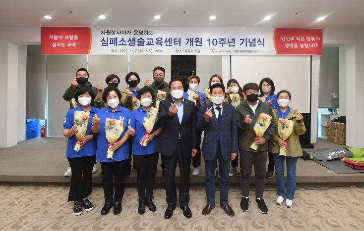 기념식에 참석한 박신원 이사장과 이권재 오산시장은 “지난 10년간 봉사자의 노고에 머리 숙여 감사드리며, 앞으로도 하트세이버봉사단 및 심폐소생술 교육센터의 발전을 위해 더 많은 관심과 애정을 더해주시길 당부드린다”고 했다.
