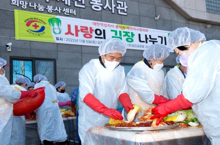 [한국기자연대] 대한적십자사 봉사회 제천지구협의회는 지난 4일부터 5일까지 양일간 적십자봉사관 앞 주차장에서 ‘사랑의 김장나누기 행사’를 개최했다.