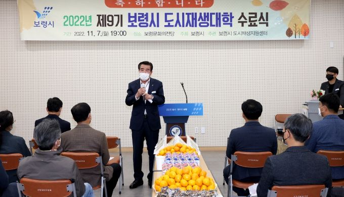 [한국기자연대] 보령시는 지난 7일 문화의전당 소강당에서 김동일 시장과 수강생 등 관계자 60여 명이 참석한 가운데 제9기 도시재생대학 수료식을 개최했다고 밝혔다.