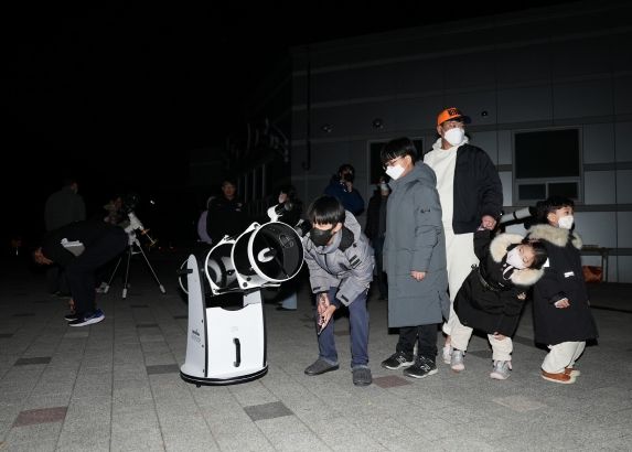[한국기자연대] 영천시 보현산천문과학관에서는 11월 8일 오후 6시부터 개기월식 현상을 유튜브를 통하여 생중계하는 온라인 관측회와 보현산천문과학관 앞마당에서 직접 천체망원경으로 설명을 들으며 월식 현상을 감상하는 오프라인 관측회를 동시에 진행했다.