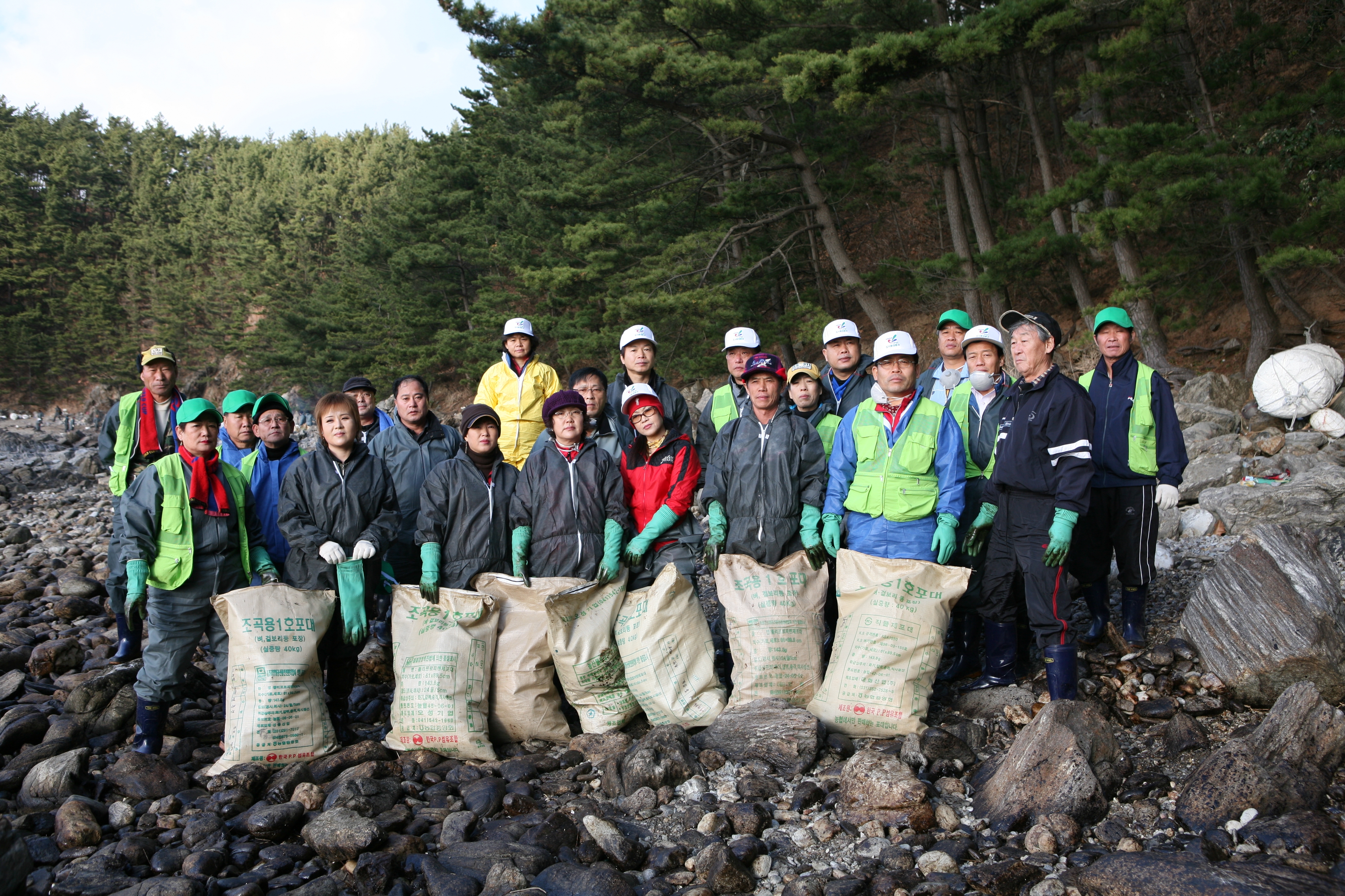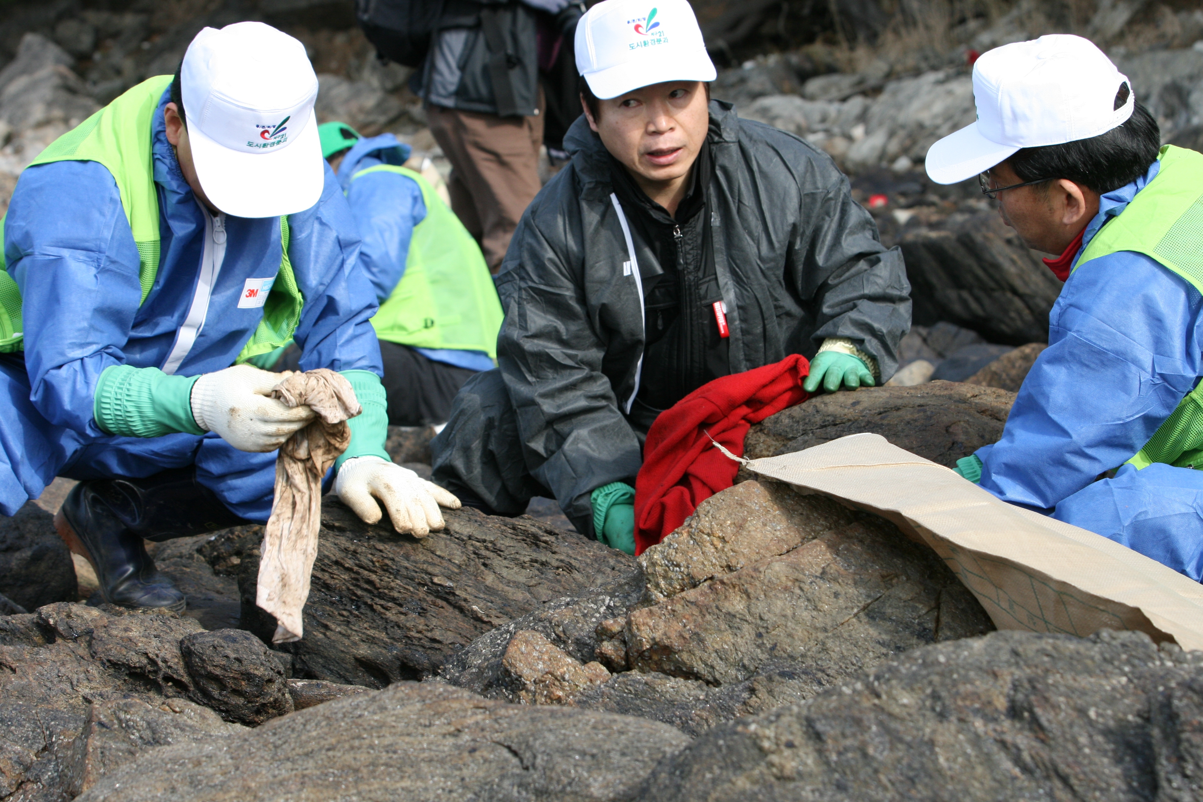 이날 자원봉사 회원들은 오전 8시30분 인천 서구청 앞에서 모여 출발하여 이곳 이원면에 오전 11시30분에 도착, 간단한 식사를 마친 뒤 12시에 곧장 현장으로 투입되어 이원면 사무소에 수령한 부직포와 회원들이 가져온 옷가지 등으로 갯바위 구석구석에 묻어 있는 원유을 제거 하는 등 4시간에 걸쳐 20포대(40kg)를 수거했다