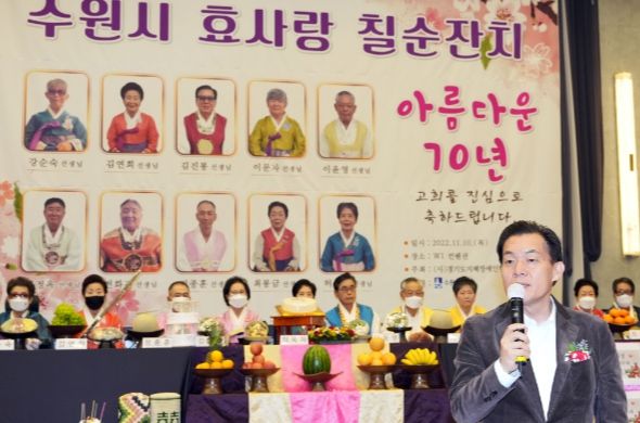 이재준 수원특례시장은 칠순 잔치에 참석해 어르신들에게 축하인사를 전했다.