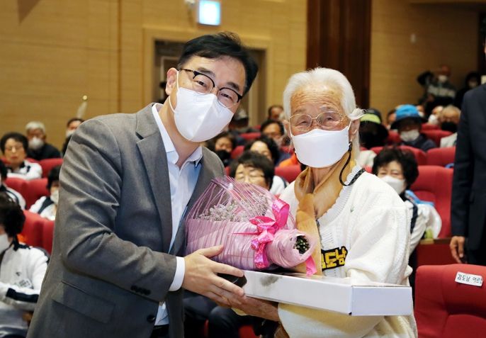 이번 행사는 축하공연을 시작으로 1부 기념식과 2부 지역주민이 갈고 닦은 무대로 이뤄졌다. 1부 기념식은 올해 100세가 된 김도남 어르신에 대한 청려장 전달, 노인복지 유공자 20명에 대한 군수 표창, 노인복지 증진에 기여한 공무원 감사패 전달, 모범노인 지회장 표창장 수여 순으로 진행됐다.