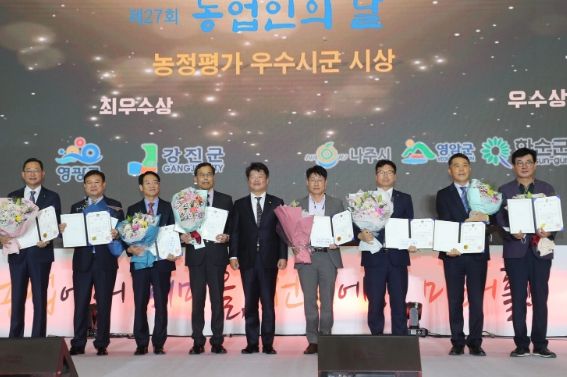 장흥군은 행복한 농촌과 농업인의 권익신장을 위해 노력한 성과를 인정받아 농업인대상 및 농정분야 우수상을 시상했다.