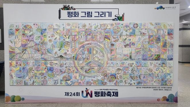 이 조형물은 지난 10월 15일부터 양일간 개최한 제24회 UN평화축제 프로그램 중 하나인 ‘평화그림 그리기’의 완성작이다.