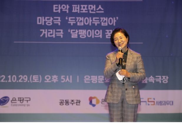 김미경 은평구청장은 “구민과 예술인 모두 즐길 수 있는 문화예술 공연이 되길 기대한다”면서 “더 나은 환경에서 예술인들이 활발히 공연하고 어른 있도록 적극 지원하겠다”고 전했다.