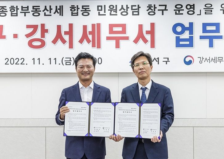강서구와 강서세무서는 지난 11일 구청 대회의실에서 전국 최초로 종합부동산세 납부에 따른 구민 불편 사항을 조기에 해결하기 위한 ‘원스톱 민원상담 창구’ 개설 및 운영 협약식을 개최했다.