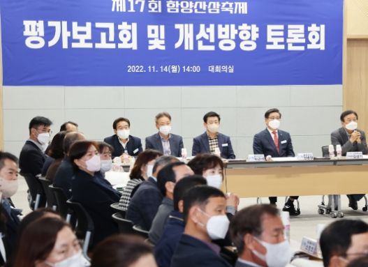 [한국기자연대] 함양군은 14일 오후 군청 대회의실에서 80여명의 관계자가 참석한 가운데 2022함양산삼축제 평가보고회를 개최했다.