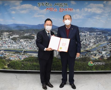 [한국기자연대] 박형덕 동두천시장은 지난 10월 광주광역시에서 열린 제30회 임방울 국악제 농악부문에서 종합대상인 국회의장상 수상 기념으로 11월 14일, 동두천 이담농악보존회를 초청하여 상장을 전수하고 축하 및 격려의 자리를 가졌다.