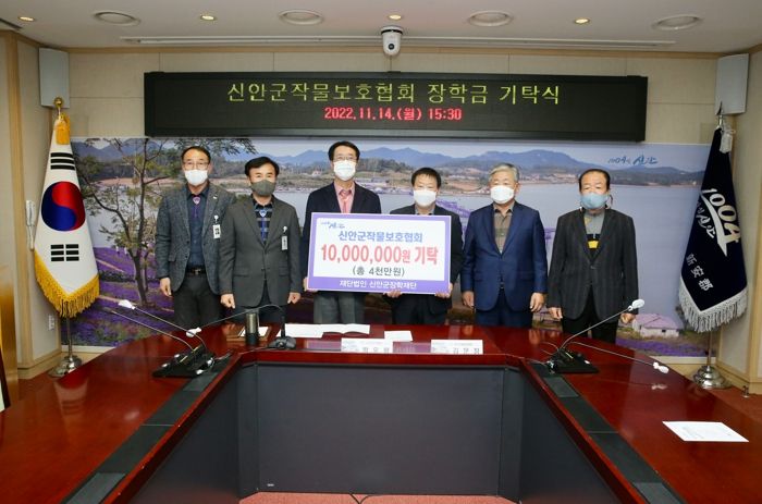 신안군작물보호협회는 관내 농약판매사들이 서로 협력해 농촌복지 증진과 지역사회 발전에 기여하기 위해 조직한 단체로, 2019년부터 4년간 매년 천만원씩 총 4천만원의 장학금을 기탁하여 지역인재육성에 지속적 관심을 보였다.