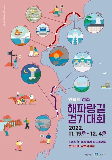 이번 대회는 읍천항 ~ 출렁다리~ 주상절리 전망대에서 반환하는 1코스인 양남 주상절리 파도소리길과, 전촌항 ~ 용굴 ~ 해국길 ~ 송대말 등대에 이르는 감포 깍지길 2코스로 나눠 진행된다.