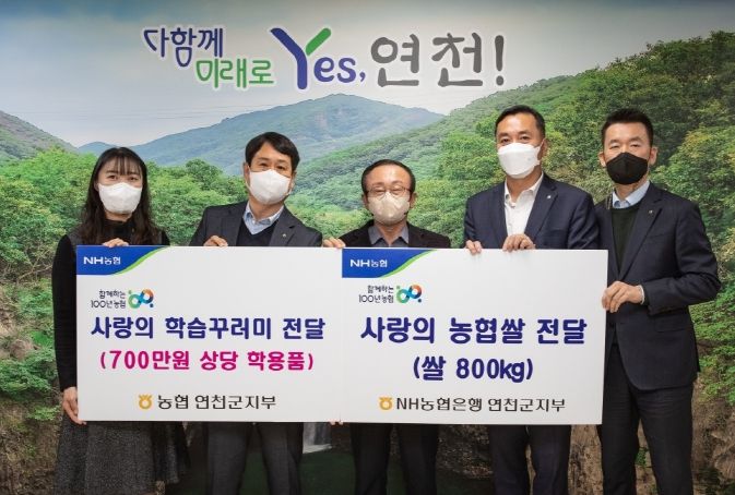 [한국기자연대] NH농협은행 연천군지부는 관내 소외계층 아동·청소년을 위해 쌀 800kg과 학습꾸러미 100개를 연천군에 기탁했다고 17일 밝혔다.