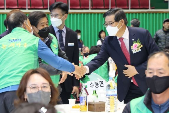 진병영 군수는“함양군의 대표 단체로서 올 한 해 동안 열심히 활동해 오신 새마을지도자 분들에게 감사드린다.”면서 “오늘 이 자리는 여러분들 스스로를 자랑스러워하고 서로 축하하기 위해 마련된 자리이니만큼 즐거운 시간되시기 바라며, 지역을 위해 많은 활동 부탁드린다.”라고 말했다.