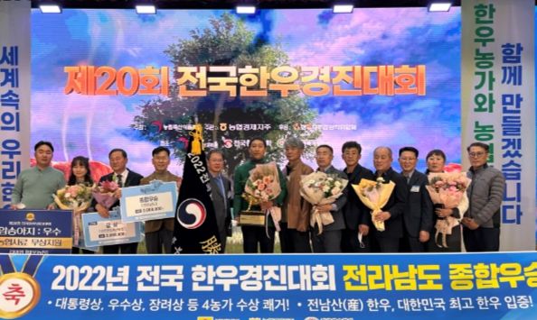 [한국기자연대] 전라남도는 17일 농협중앙회에서 열린 2022년 전국 한우경진대회에서 대통령상 등 다수의 우수상을 수상해 종합우승을 차지, 전남산 한우가 전국 최고임을 입증했다고 밝혔다.
