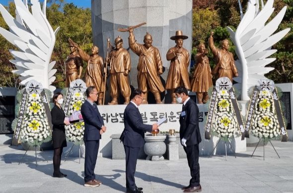 [한국기자연대] 전라남도와 광복회 전라남도지부는 17일 무안 남악에 있는 전남 항일독립운동기념탑에서 국권회복을 위해 헌신한 순국선열의 얼과 위훈을 기리는 제83주년 순국선열의 날 기념식을 개최했다.